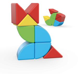 Magnetická stavebnice obsahuje 16 půlkostek a 8 výsečí ve čtyřech barvách. Zkombinujte je s ostatními tvary řady Magicube. Vhodné od 1 roku.