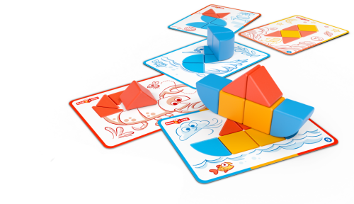 Unikátní magnetická stavebnice doplněná kartičkami pro snadné vytváření obrázků. Přechází od jednoduchých po složitěší varianty práce s různými tvary. Šablony odpovídají skutečné velikosti dílků 1:1. Atraktivní zábava pro menší děti – podporuje fantazii a tvořivost. Obsahuje 10 magnetických prvků a 6 oboustranných kartiček s 12 návody. Vyrobeno ze 100% recyklovaného plastu. Vhodné pro děti od 2 let.
