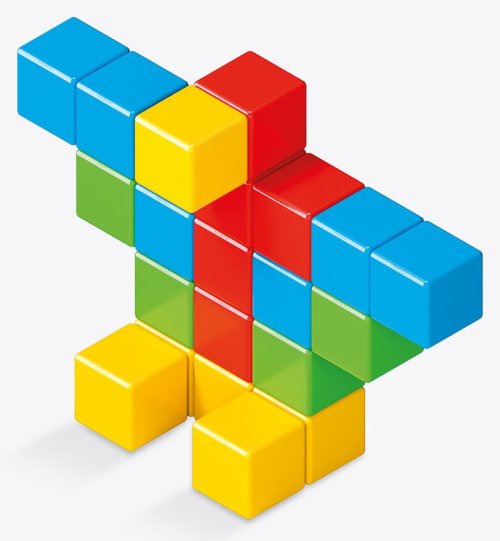 Geomag Magicube Full Color 24 dílků představuje stavebnici složenou z 24 magnetických kostiček, které mají unikátní vnitřní konstrukci umožňující vzájemné přitahování ze všech stran. Díky tomu lze jednoduše a bezpečně skládat rozmanité tvary a objekty bez omezení směru spojování. Kostičky jsou v základních čtyřech barvách – červené, žluté, zelené a modré – což podporuje rozvoj barevného vnímání a kreativitu malých stavitelů.