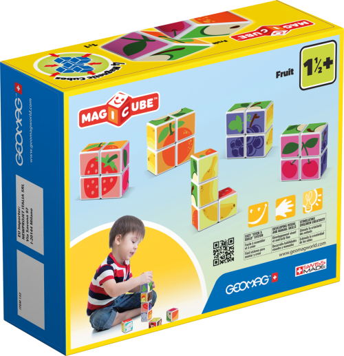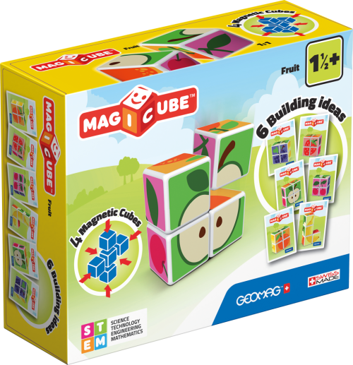Geomag Magicube Ovoce nejenže stimuluje kreativitu a logické myšlení, ale také rozvíjí vizuální a hmatové vnímání dětí. Díky jednoduchému, ale chytrému magnetickému systému je sestavování intuitivní a zábavné, což podporuje samostatnou hru a objevování. Tento produkt je vyráběn švýcarskou společností, která klade důraz na kvalitu a bezpečnost, což potvrzuje i značka Swiss Made na obalu. Celkově jde o vhodnou a atraktivní stavebnici pro nejmenší, která spojuje učení s hrou prostřednictvím motivů oblíbeného ovoce.