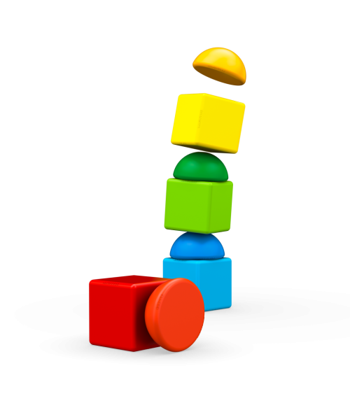 Magnetická stavebnice Stavění věží baví i malá miminka Obsahuje čtyři magnetické polokoule a čtyři magnetické krychličky v kombinaci osmi barev Vyrobeno ve Švýcarsku, z recyklovaného plastu