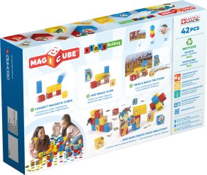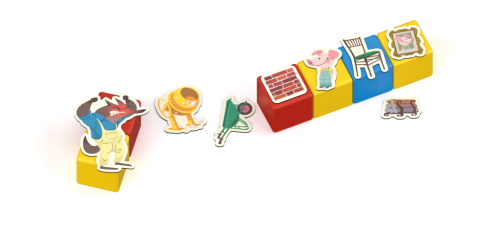 Rodiče čtou pohádku O třech malých prasátkách a děti ji přikládáním klipů k magnetickým kostičkám sami vytváří. Nebo můžete vymýšlet pohádky vlastní. Součástí je text v češtině a slovenštině. Obsahuje 10 magnetických kostek, 31 klipů s obrázky a oboustrannou kartu s motivem domu a lesa. Vyrobeno ze 100% recyklovaného materiálu. Vhodné pro děti od 3 let.