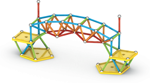 Geomag Supercolor je stavebnice, která nabízí 142 dílků pro kreativní a zábavné stavění magnetických konstrukcí. Sada obsahuje 68 magnetických tyček v zářivých barvách, které jsou potažené plastem vyrobeným ze 100% recyklovaného materiálu, díky čemuž je produkt šetrný k životnímu prostředí. K magnetickým tyčkám je přidáno 68 ocelových kuliček a 6 plastových podstavců – tři čtvercové a tři pětiúhelníkové – které umožňují stabilní a pevné spojení jednotlivých dílů. Díky barevnému provedení a kvalitnímu zpracování jsou výsledné stavby vizuálně atraktivní a zároveň odolné.