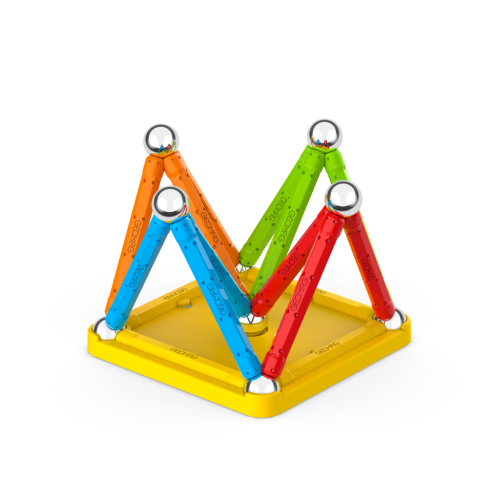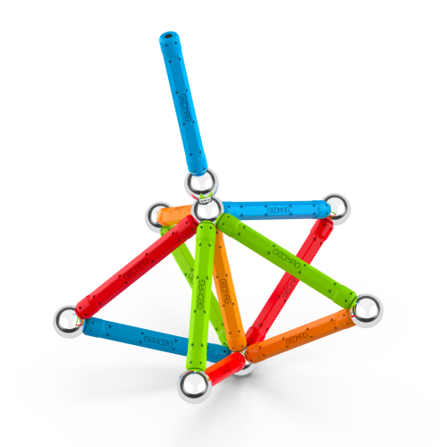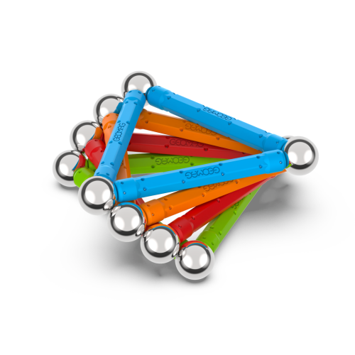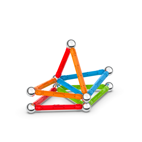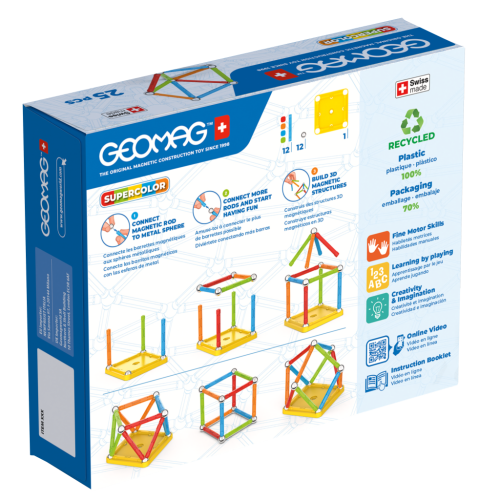 Magnetická stavebnice Balení obsahuje 12 magnetických tyček různých barev, 12 ocelových kuliček a 1 čtvercový podstavec Součástí balení je navíc praktický úložný box Vyrobeno ve Švýcarsku, z recyklovaného plastu