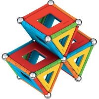 Všechny plasty použité pro potahy tyček, panely a podstavce jsou ze 100% recyklovaného materiálu a jejich dokonalé barvy potěší i ty nejnáročnější. Součástí balení jsou navíc praktické transparentní úložné boxy, které jsou také vyrobeny z recyklovaného plastu. S nimi máte možnost mít stavebnici pořád u sebe a navíc přehledně srovnanou v kapesním balení. Stavebnice obsahuje 28 magnetických tyček různých barev, 20 ocelových kuliček, 16 trojúhelníkových, 12 čtvercových a 2 pětiúhelníkové výplně v kombinaci barevných odstínů. Celkem 78 dílků. Vhodné od 5 let. Vyrobeno ve Švýcarsku.