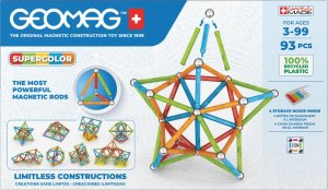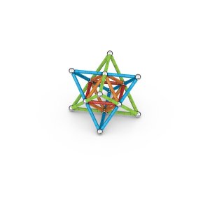 Všechny plasty použité pro potahy tyček a podstavců jsou ze 100% recyklovaného materiálu a jejich dokonalé barvy potěší i ty nejnáročnější. Součástí balení jsou navíc praktické transparentní úložné boxy, které jsou také vyrobeny z recyklovaného plastu. S nimi máte možnost mít stavebnici pořád u sebe a navíc přehledně srovnanou v kapesním balení. Stavebnice obsahuje 44 magnetických tyček různých barev, 44 ocelových kuliček, 2 čtvercové a 3 pětiúhelníkové plastové podstavce. Celkem 93 dílků. Stavebnice je vhodná pro děti od 3 let. Vyrobeno ve Švýcarsku.