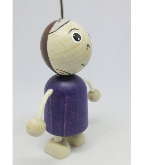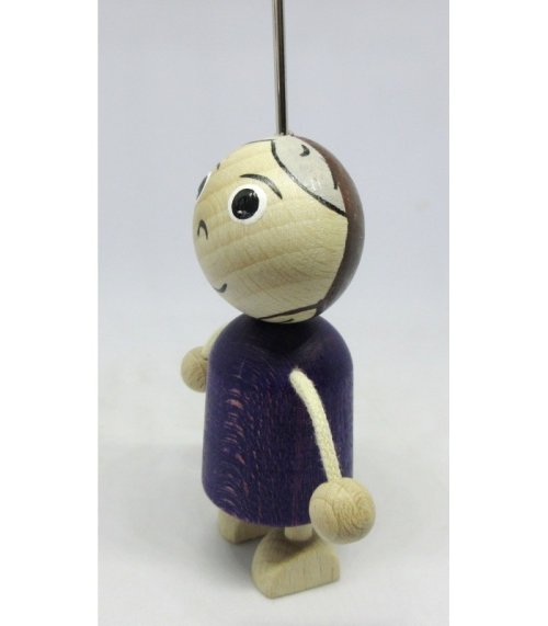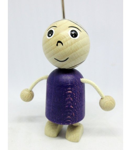 Dřevěná loutka babičky ke knižnímu loutkovému divadlu. Velikost loutky s vodícím drátem 21 cm. Loutka má fialové tělíčko a ručně malovaný obličej. Každá loutka je originál. Loutku využijete např. v pohádce O Červené karkulce, může si však zahrát i Jezinku ve Smolíčkovi. Dřevěná loutka bez vodících nití je vhodná pro nejmenší děti. Nechte je objevovat svět fantazie a loutkových divadel. Produkt se může lišit v barevných detailech. Hlavní vlastnosti: Ručně vyráběná loutka z chráněné dílnyVelikost loutky je 12 cm bez vodícího drátkuDíky vodícím nitím, má loutka pohyblivé ruce