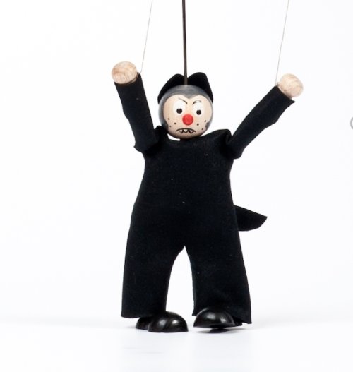 Tento vlk číhá v lese, jestli neuvidí Karkulku. Jak ta pohádka asi dopadne? Nabízíme vám loutku o velikosti 12 cm bez vodícího drátku, vyrobenou pečlivě v naší chráněné dílně. Díky nitkám má pohyblivé ruce. Produkt se může lišit v barevných detailech. Hlavní vlastnosti: ručně vyráběná loutka z chráněné dílnyvelikost loutky je 12 cm bez vodícího drátkudíky vodícím nitím, má loutka pohyblivé ruce