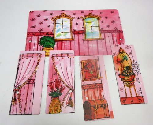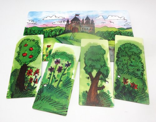 Nabízíme oboustrannou scénu a boční scény pro Gerlichovo loutkové divadlo představující pohled z lesa na královský zámek a krásnou komnatu uvnitř královského zámku. Hlavní vlastnosti: rozměry hlavní scény jsou 40x23 cm, 4ks boční kulisa 9,5x23 cmtato scéna je určena pro Gerlichova loutkové divadla