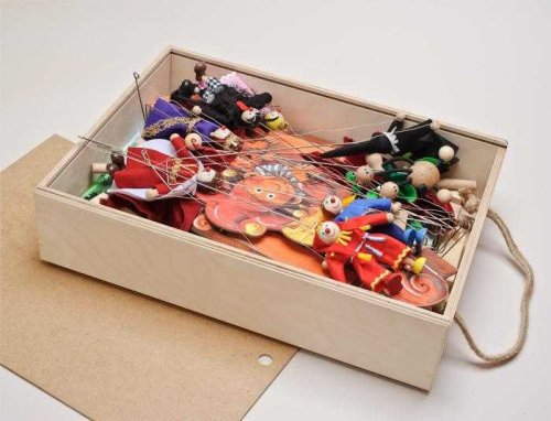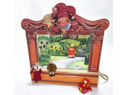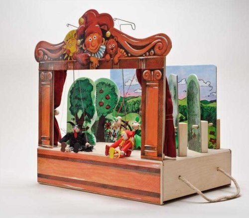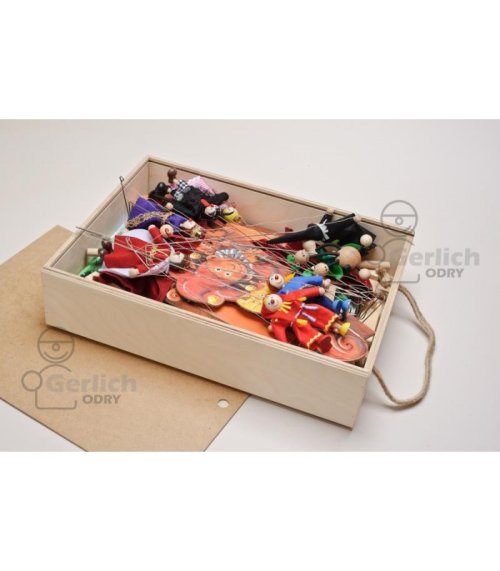Půvabné dřevěné loutkové divadlo pro vaše děti. Ponořte se spolu s dětmi do světa nejznámějších českých pohádek. Vhodné pro děti od 3 let. Krásně propracované dřevěné loutkové divadlo s jednotlivými loutkami, probudí u Vašich dětí fantazii, posílí paměťové a výrazové schopnosti. Velikost loutkového divadla: 46 x 41 x 32 cm Velikost loutky: 12-15 cm Sestava obsahuje dřevěnou krabici, 8 dřevěných loutek, 4 scény, proscenium s veselým kašpárkem a oponu. Loutky se mohou lišit v barevných detailech. Obsahuje oboustranné kulisy: Na zámku / Před zámkem U jeskyně / V pekle Obsahuje loutky: Král Ferdinand Královna Alžběta Princezna Anička Princ Slavomír Tříhlavý drak Čertík Bruno Čaroděj Vilém Kašpárek Celá loutková sestava je zabalena v praktickém dřevěném kufříku s posuvným víkem. Hlavní vlastnosti: Dřevěné divadlo s 2 oboustrannými kulisami a 8 loutkamiRučně vyráběné loutkyRozměry hlavní scény jsou 40x23 cm, rozměry bočních kulis jsou 9,5x23 cmDivadlo lze rozšířit o další loutky a kulisy