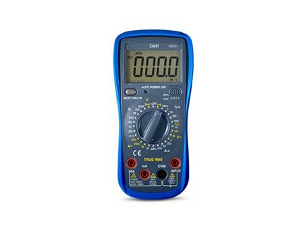 Multimetr GETI GM50C je profesionální přístroj vhodný k měření široké škály elektrických veličin jako jsou: napětí (DCV a ACV), proud (DCA a ACA), odpor, kapacita a další. Velký a podsvícený displej, zajišťuje snadné a dokonalé čtení zobrazených údajů i za zhoršených světelných podmínek. Přístroj je také vybaven dalšími praktickými funkcemi, jako je indikace slabé baterie, ochrana proti přetížení, testování diod nebo měření kontinuity, které dodávají multimetru uživatelsky přívětivý charakter. Díky svému tvaru a kompaktním rozměrům zaručuje tento přístroj snadnou a přesnou manipulaci. Všechny tyto vlastnosti z tohoto multimetru činí ideální přístroj nejen pro profesionály, ale také dílny a domácnosti.