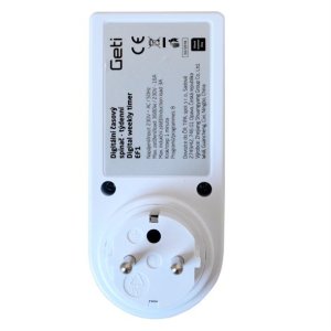 Digitální spínací zásuvka Geti EF1 představuje ideální řešení pro automatické ovládání elektrických spotřebičů ve vašem domě nebo kanceláři. Díky pokročilému týdennímu programování můžete snadno nastavit zapínání a vypínání různých zařízení podle vašich potřeb a denního režimu.