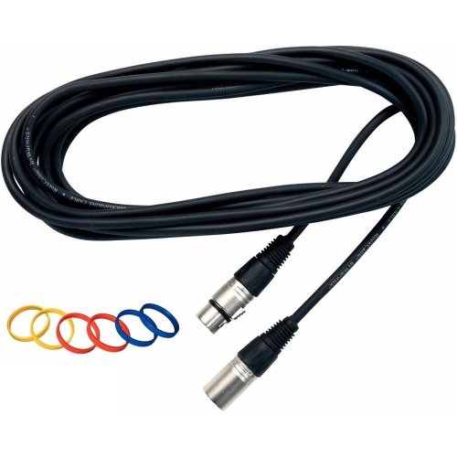 Mikrofonní kabel Konektory XLR (F) - XLR (M) s kovovým pláštěm a plastovým pouzdrem 6 kódovacích kroužků ve 3 barvách Délka kabelu 9 m Tloušťka kabelu 6 mm Černá barva