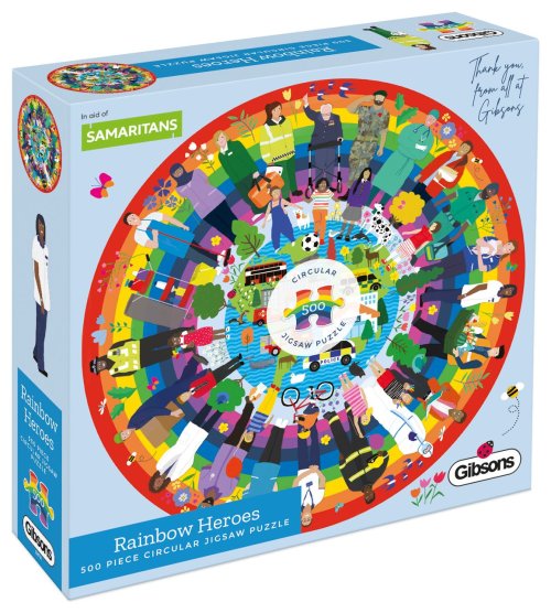 Gift of the Year 2021 WINNER - Vítěz Pamětní a charitativní kategorie k udělení Daru roku 2021. Rok 2021 si budeme pamatovat jako velmi podivný a náročný rok. Ti, kteří nás udržovali v bezpečí, krmili, starali se o nás a dodávali věci, které potřebujeme, se stali našimi hrdiny. Objevili jsme nové "obyčejné" hrdiny v okolí našich domovů. Jako poděkování hrdinům daruje výrobce Gibsons 2 libry z každého prodaného puzzle Rainbow Heroes charitativní organizaci Samaritans. Puzzle od anglického výrobce GIBSONS. Rozměr složeného puzzle cca průměr 49 cm