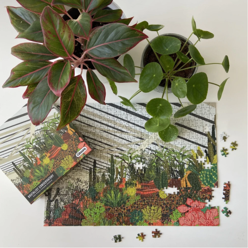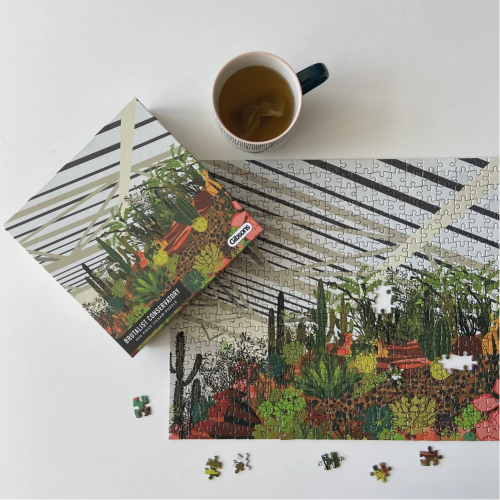 Toto pichlavé puzzle zobrazuje svatyni se skleněnou střechou plnou tropických rostlin, listnatých stromů a spousty kaktusů.