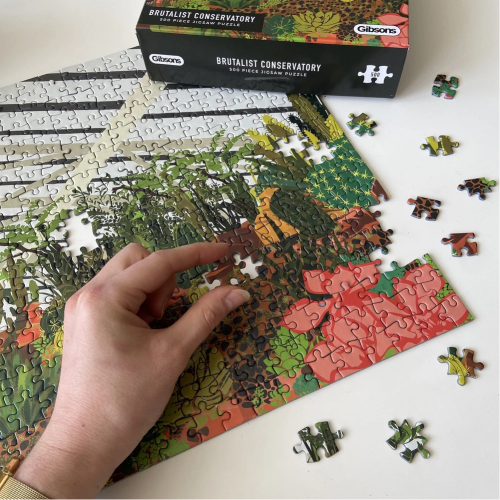 Toto pichlavé puzzle zobrazuje svatyni se skleněnou střechou plnou tropických rostlin, listnatých stromů a spousty kaktusů. Poskytuje pohled zimní zahradu, která se vine kolem ikonického londýnského Barbican , známého svou brutalistickou architekturou , koncerty, divadelními představeními, filmovými projekcemi a uměleckými výstavami. Součástí balení je předloha skládaného motivu.