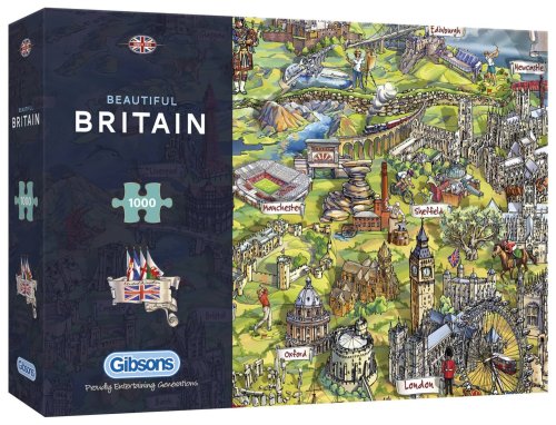 Puzzle s motivem kreslených památek Londýna Marie Rabinky od anglického výrobce GIBSONS. Rozměr složeného puzzle cca 68 x 49 cm