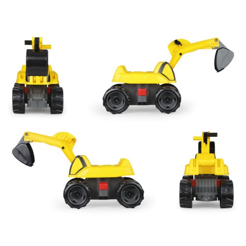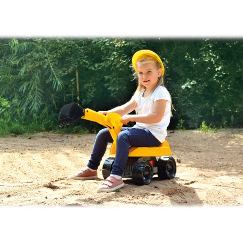 Robustní bagr s velkou plochou pro sezení, 6mm hrubé kovové osky kol. Moderní detailní design. S ramenem je možno kopat do hloubky až 20cm. Otočný podvozek o 360 stupňů. Součástí pojistka k zajištění otáčení. Ovládání bagrovacího ramene pomocí dvou praktických držadel. Velikost bagru: 67 cm Rozměr balení: 70 x 35 x 28 cm Vhodné pro děti od 3 let.