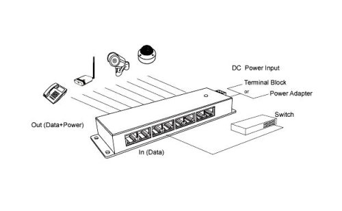 Technické specifikace: Vstup : 12-57V DC 2.1MM/Phoenix DC connector Výstup: 12-57V (max 1A per port) Data: 1/2&3/6&4/5&7/8 Napájení: 4/5 & 7/8 Data In :Connects PC/HUB/Switch Hmotnost : 85g Rozměry: 115mm×45mm×25mm Ethernet : TIA/EIA 568 Cat. 5 Data rate : 10/100/1000Mbps Typ konektoru: RJ-45 Rozsah provozních teplot : 0°C ~ +40°C Rozsah skladovacích teplot : -40°C ~+70°C Vlhkost (provoz.) : 10% ~ 80% RH Vlhkost (sklad.) :5% ~ 90% RH Certification: CE , FCC