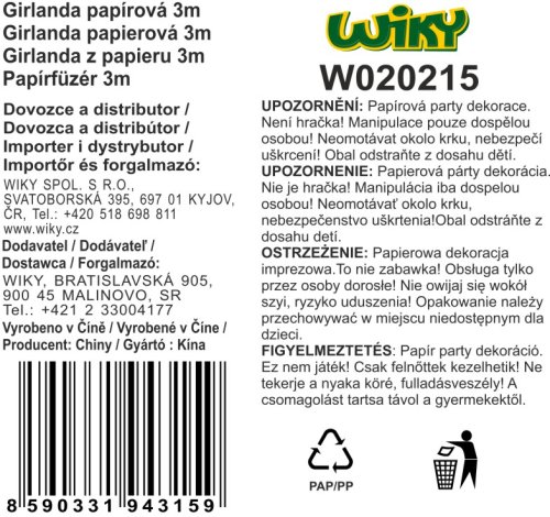 Girlanda papírová vícebarevná 3m