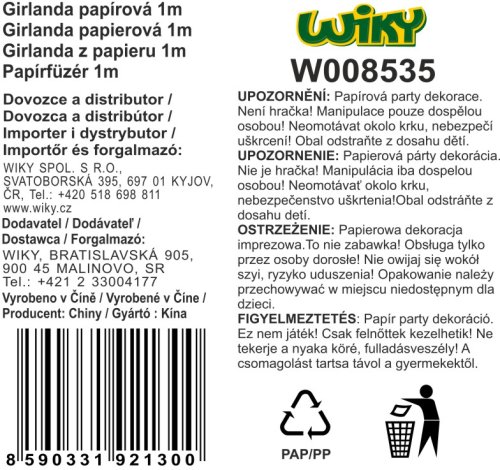 Papírová girlanda s motivem duhy o délce 1 m.