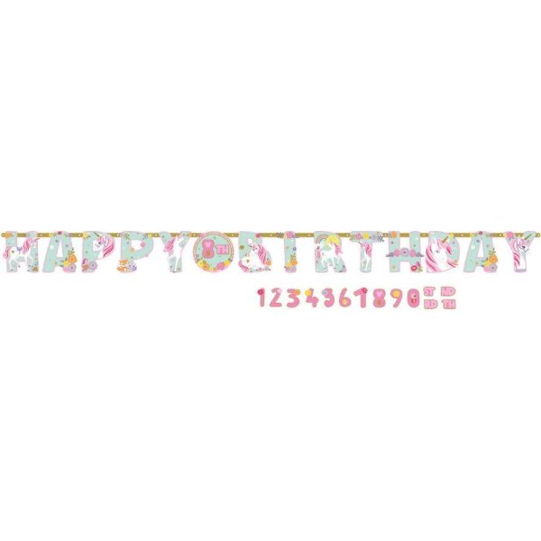 Narozeninová girlanda Happy Birthday Unicorn. Rozměry 320 x 25,4 cm.
