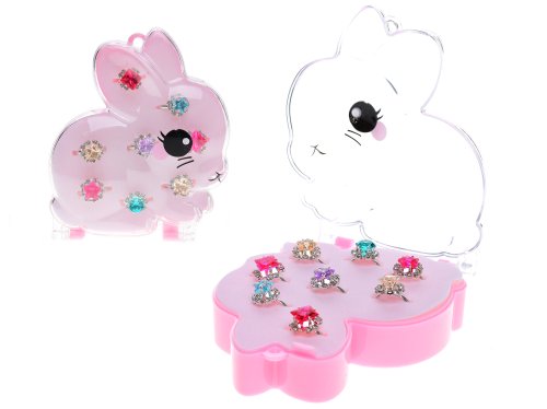 Glamour sada 8 ks prstýnků kov v krabičce ve tvaru králíčka