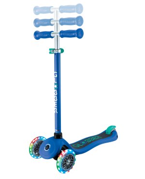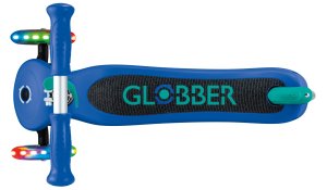 nízký vyztužený rám těla s protiskluzovou kompozitní deskou, nosnost 50 kg, podsvícená kola (blikají červeně, zeleně a modře), dynamo integrované v jádru kol, zámek řízení, nastavitelná hliníková T-tyč do 4 výškových úrovní, ergonomické rukojeti, hmotnost 2,33 kg, výška 67,5-82,5cm x 57,5cm x 28cm