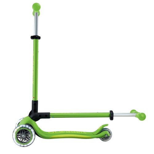 3 kolečka, svítící přední kola, patentovaný skládací mechanismus, patentovaný zámek řízení, průměr předních kol 120 mm, průměr zadních kol 80 mm, LED přední kola (technologie dynamo), protiskluzový běhoun, odnímatelná hliníková řídítka nastavitelná ve 4 úrovních mezi 68-83cm, ergonomická řídítka s TPR bezpečnostními rukojeťmi, nosnost 50 kg