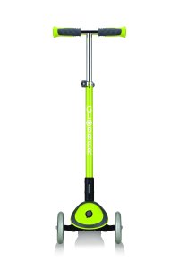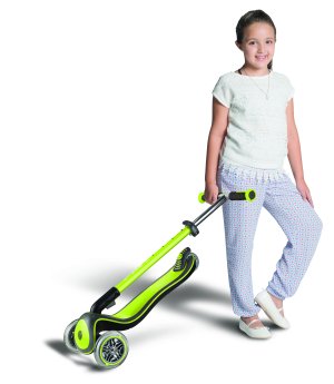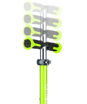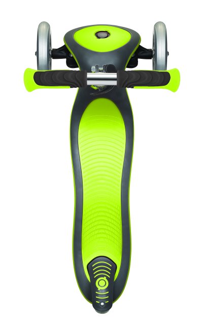 Koloběžka má výbornou směrovou stabilitu, patentovaný systém natáčení předních kol, který lze navíc aretovat. Toto ocení najme nejmenší, kteří se s koloběžkovaním jen seznamují.