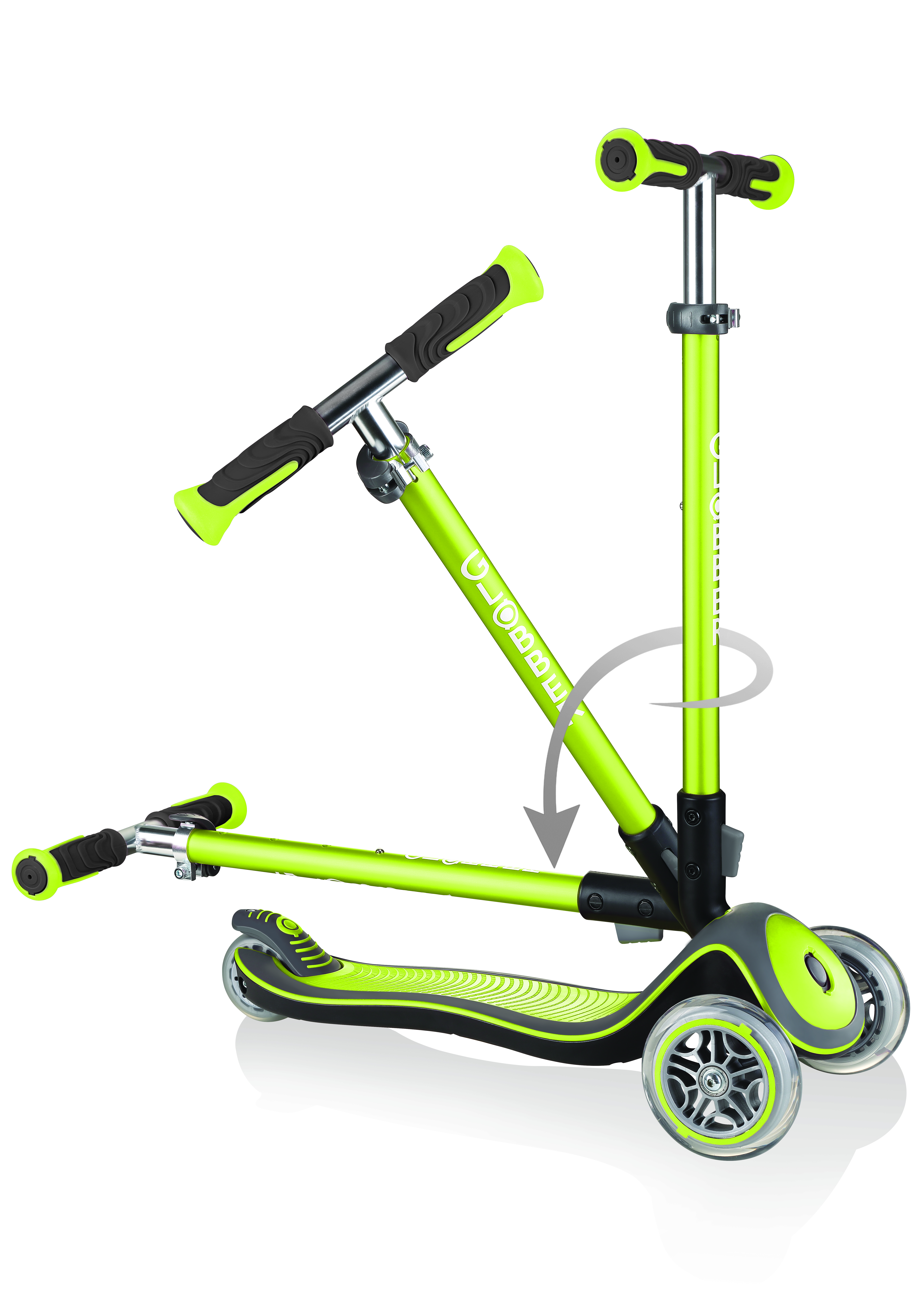 Jedinečná skládací dětská koloběžka-tříkolka vyznačující se unikátním skládacím systémem, díky kterému je efektivní a skladná.
