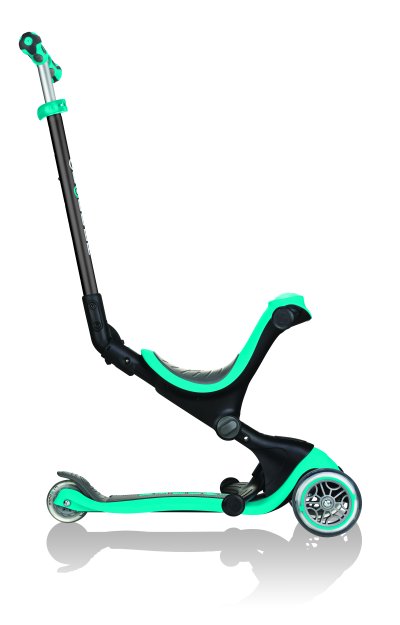 Koloběžka je vyrobena z vysoce kvalitních materiálů, aby spolehlivě sloužila dlouhá léta ve všech provedeních. V úvodu slouží jako dětské odrážedlo s dopomocí. Později se ručka demontuje a dítě má super odrážedlo, kde přední soustava kol slouží pro zachování rovnováhy. Při náklonu se přední kolečka natáčejí do směru a tím si dítě osvojí naklánění a práci z těžištěm. Poslední fází je mimořádně oblíbená koloběžka, která díky výborným ložiskům a tichým kolům má výbornou setrvačnost a pro děti je mimořádně ovladatelná a živá.