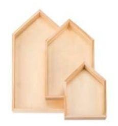 Sada 3 domků z FSC dřeva. Domky můžete použít přírodní, aby vynikla krása dřeva nebo je pomalovat akrylovýmí barvami,ozdobit ubrousky či rýžovými papíry za pomoci výtvarné techniky decoupage Velikost domků 20x40cm, 17x30cm, 14x20cm.
