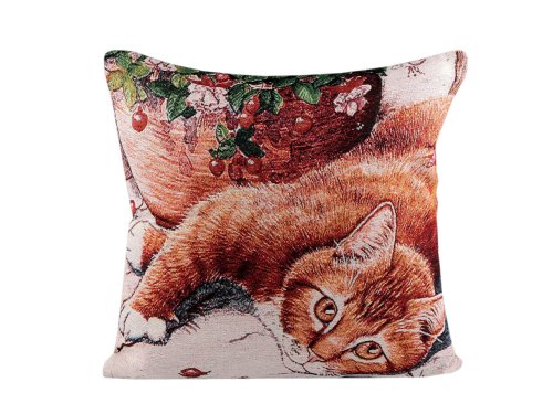 Povlaky na polštář s roztomilými obrázky koček oživí a zútulní váš interiér. Zpracováním napodobují gobelín. Povlaky jsou jednostranné, zadní strana je jednobarevná, z jemného plyše. Pohodlně se zapínají na zip. Prodáváme pouze povlak bez výplně.