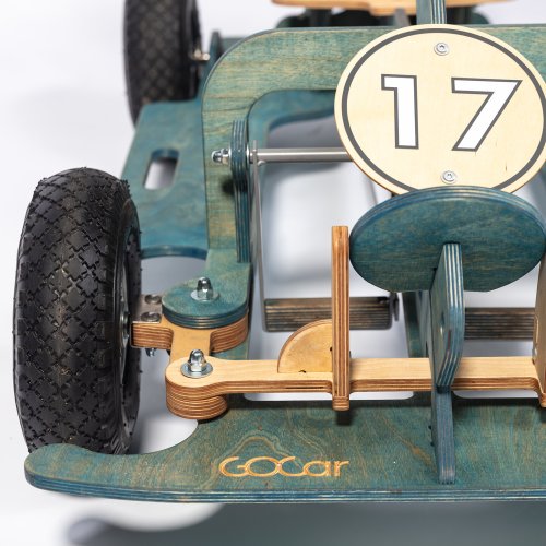 Šlapací autíčko GOCar je zábavnou výzvou jak pro tatínky, kteří si při jeho stavbě umí odpočinout, tak pro ratolesti toužící držet volant, učit se pravidlům provozu i závodění. Základem maximálně ekologické konstrukce vozítka je bezkazová, pevná a odolná březová překližka původem z Lotyšska, která byla důkladně ošetřena voskovým olejem, a odolá tak povětrnostním vlivům. Odolnost vůči nepřízni prostředí také zajišťují díly z nerezové oceli a robustní plastová kluzná ložiska. Šlapací mechanika je přizpůsobena omezenému prostoru a maximální bezpečnosti. Dynamice jízdy prospívají objemná nafukovací pojezdová kola. K zajištění řidičova pohodlí je autíčko vybaveno posuvným opěradlem. Autíčko velikosti M (střední), má nosnost do 50 kg a je určeno pro děti od 6 do 10 let. Hlavní vlastnosti:pro děti od 6 do 10 let, max. 50 kgodolná konstrukceve formě stavebnice
