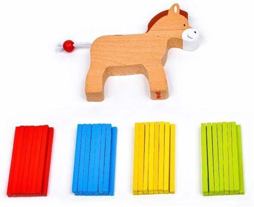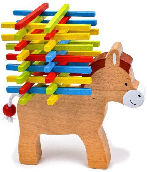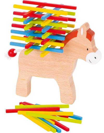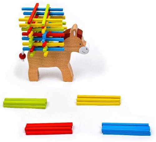 Balanční hra Oslík vyrobená ze dřeva rozvíjí jemnou motoriku, šikovnost a trénuje trpělivost. Hraj sám nebo s dalšími hráči. Dřevěné tyčky je třeba pokládat tak, aby se náklad nepřevrhl. Chce to pevnou ruku a skvělou taktiku. Heslo hry: ROVNOVÁHA. Balení obsahuje: oslíka, 61 barevných tyček, návod. Rozměry: 10,5 x 12 cm. GOKI patří mezi nejvýznamnější evropské výrobce hraček s vysokou pedagogickou a didaktickou kvalitou. Firma klade důraz na bezpečnost hraček, jejich zdravotní nezávadnost a dbá na obnovitelné zdroje. Dřevo je bráno tam, kde může dorůstat. Používané dřeviny jsou javor, buk, ořech, lípa, jasan, borovice, bříza a gumovník. Barvy a laky pocházejí od menších výrobců.