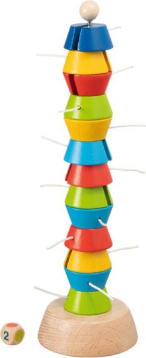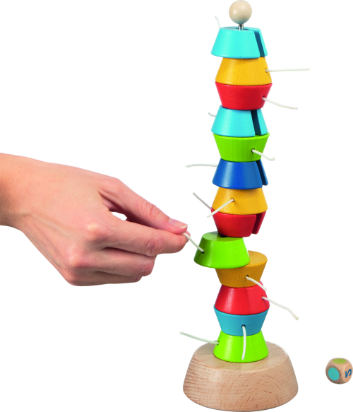 rozvíjí jemnou motoriku, šikovnost a trénuje trpělivost Výška věže: 30 cm. GOKI patří mezi nejvýznamnější evropské výrobce hraček s vysokou pedagogickou a didaktickou kvalitou. Firma klade důraz na bezpečnost hraček, jejich zdravotní nezávadnost a dbá na obnovitelné zdroje. Dřevo je bráno tam, kde může dorůstat. Používané dřeviny jsou javor, buk, ořech, lípa, jasan, borovice, bříza a gumovník. Barvy a laky pocházejí od menších výrobců.