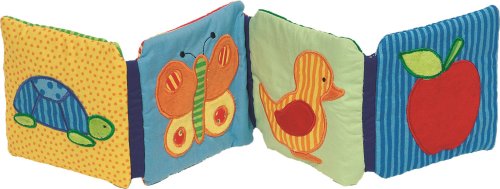 Obrázková knížečka pro nejmenší z bavlny se všitým chrastítkem, pískátkem a šustící fólií. Na 4 barevných listech najdeme osm různých obrázků. Lze prát ručně při max 30°C. Vhodné pro děti od narození. Rozměr: 13 x 12,3 x 5 cm.
