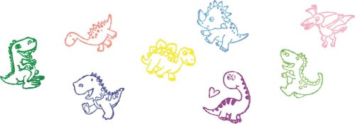 8 druhů dinosauřích mláďat rozvíjí dětskou fantazii, rozměry: výška 3 cm, Ø= 2 cm.