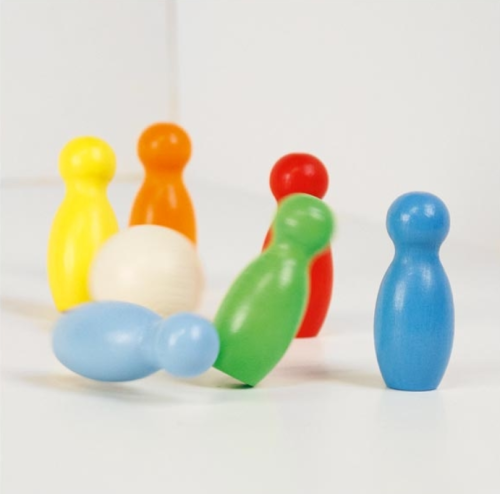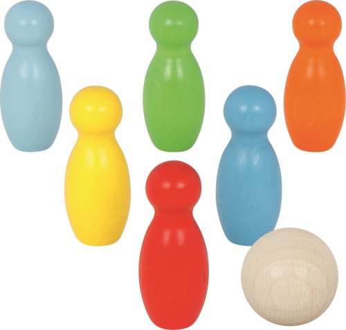Tato hra procvičuje u dětí odhad vzdáleností, koordinaci pohybů a přesnost. Obsahí balení: 6 barevných kuželek a 1 dřevěná kulička. Výška kuželky: 6,5 cm