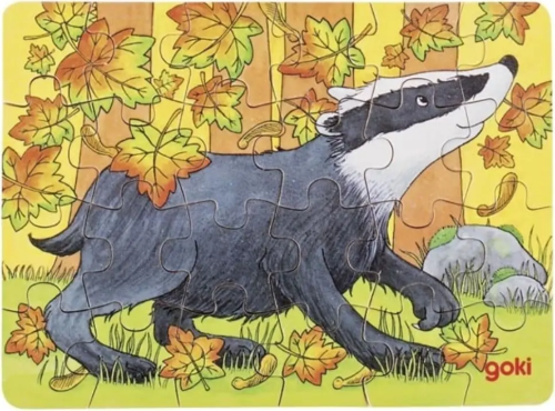 Dětské puzzle ze dřeva s motivem obyvatel lesa. Skládání puzzle rozvíjí fantazii a podporuje rozvoj motoriky. Doporučeno pro děti od 4 let. GOKI patří mezi nejvýznamnější evropské výrobce hraček s vysokou pedagogickou a didaktickou kvalitou. Firma klade důraz na bezpečnost hraček, jejich zdravotní nezávadnost a dbá na obnovitelné zdroje. Dřevo je bráno tam, kde může dorůstat. Používané dřeviny jsou javor, buk, ořech, lípa, jasan, borovice, bříza a gumovník. Barvy a laky pocházejí od menších výrobců. Rozměr složeného puzzle cca 17 x 12 cm