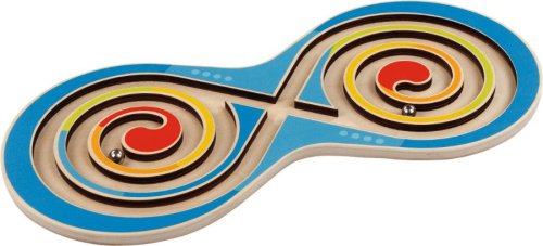 Dřevěný kuličkový labyrint s motivem ležaté osmičky.