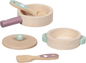 Děti milují vaření a výbava ze dřeva je naštěstí dost robustní, aby přežila i kuchařské katastrofy. Vyrobeno z buku.