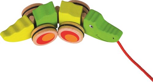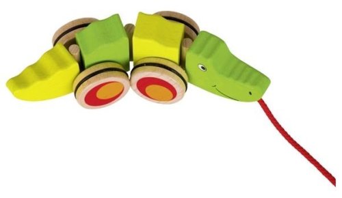 Přátelský krokodýl s vlnitými pohyby, vyrobeno z masivního dřeva, podporuje motoriku a smysl pro rovnováhu, hračka je věrným společníkem pro první výlety dítěte.