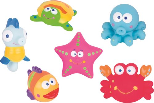 Stříkající hračky do vody pro nejmenší děti. Malými stříkajícími postavičkami bude každodenní povinné večerní koupání plné zábavy a potěšení nejen pro dítě, ale i pro rodiče. Ve vaně si děti mohou zahrát různé vymyšlené pohádkové příběhy, přičemž čas určený ke koupání zaručeně rychle uběhne.