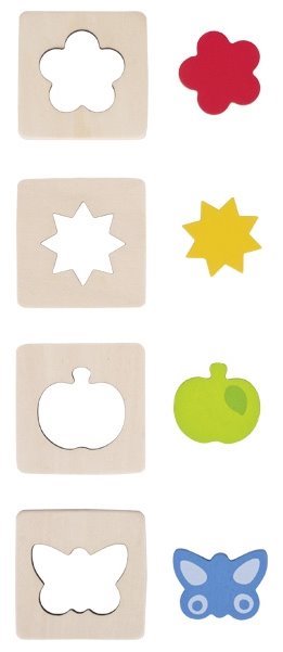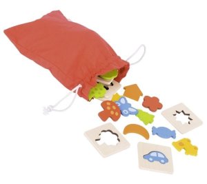 Hra je vyrobena ze dřeva, 16 rámečků z přírodního dřeva (5,9 x 5,9 cm) a 16 barevných vyřezávaných obrázků, hra stimuluje hmat a smyslové vjemy, rámečky se rozdělí mezi hráče a poskládají na stůl, dílky ve tvaru předmětů zůstanou v pytlíku a hráči se postupně bez dívání, pouze po hmatu, pokusí v pytlíku najít tvar do svých rámečků, lze hrát i obráceně, hracích variant je několik.