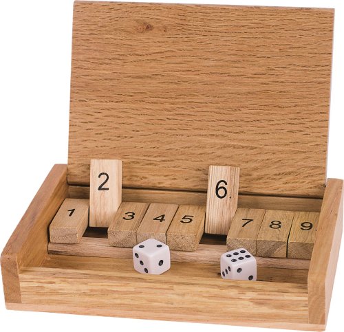 Shut the box neboli šance je hra s kostkami a se štěstím pro dva hráče a více, tentokráte v cestovním provedení. Cílem hry je zaklapnout co nejvíce a nebo všechna čísla na hracím poli. Vyhrává ten hráč, kterému se podaří zaklapnout všechna čísla. Zůstanou-li některá otevřená, sčítá se jejich suma a vyhrává ten hráč, který dosáhl nejnižštího součtu čísel. Hra obsahuje: hrací desku se dvěma kostkami, pravidla hry. GOKI patří mezi nejvýznamnější evropské výrobce hraček s vysokou pedagogickou a didaktickou kvalitou. Firma klade důraz na bezpečnost hraček, jejich zdravotní nezávadnost a dbá na obnovitelné zdroje. Dřevo je bráno tam, kde může dorůstat. Používané dřeviny jsou javor, buk, ořech, lípa, jasan, borovice, bříza a gumovník. Barvy a laky pocházejí od menších výrobců.