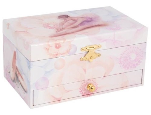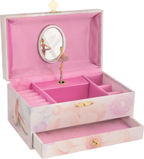 Šperkovnice ve stylu hrací skříňky potěší malé dámy, které touží uložit své šperky jak se patří. Po otevření skříňky začne hrát jemná melodie z opery Labutí jezero a malá baletka se roztančí před svým zrcadlem. Rozměry skříňky: 19 x 11,3 x 9,7 cm. Upozornění: Výrobek není hračka, jedná se o dekorativní předmět. GOKI patří mezi nejvýznamnější evropské výrobce hraček s vysokou pedagogickou a didaktickou kvalitou. Firma klade důraz na bezpečnost hraček, jejich zdravotní nezávadnost a dbá na obnovitelné zdroje. Dřevo je bráno tam, kde může dorůstat. Používané dřeviny jsou javor, buk, ořech, lípa, jasan, borovice, bříza a gumovník. Barvy a laky pocházejí od menších výrobců.