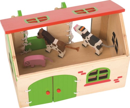 Dřevěná farma přenese děti na venkov a otevře jim dveře k nekonečným příběhům. Skládá se ze 13 pevných a barevných dílů, včetně farmy s otevíracími vraty a odnímatelnou střechou, zvířátek, traktoru a postaviček, které děti mohou libovolně rozmístit a vytvářet tak vlastní scénáře. Hračka rozvíjí jemnou motoriku, procvičuje koordinaci ruka-oko, podporuje fantazii a motivuje k představivé hře. Díky pevnému materiálu, kvalitnímu zpracování a použití netoxických barev je bezpečná a odolná. Hlavní vlastnosti: 13 dílůodnímatelná střecha, otevírací vratarobustní provedeníprocvičuje jemnou motoriku a koordinaci ruka-okomotivuje k představivé hře