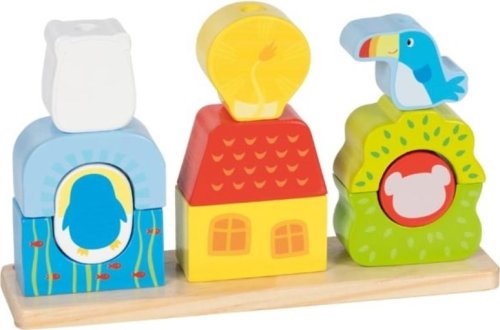Zábavná stohovací hra slouží ke vkládání a skládání jednotlivých dílků. Každý díl je opatřen otvorem tak, aby jej dítě mohlo jednoduše nasadit na stojánek a napojovat jeden díl na druhý. Hra podporuje přirozený vývoj dítěte, jeho šikovnost, logické uvažování, jemnou motoriku a představivost. Příjemné zpracování - zářivé barvy.